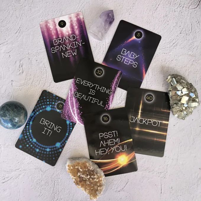 Introducing The Oracle of E, the magical oracle card deck cooked up by Pam Grout, #1 New York Times best-selling author of E-Squared and E-Cubed, and internationally renowned intuitive Colette Baron-Reid, author of Wisdom of the Oracle Divination Cards. Tried-and-true, uncanny, humorous, and always accurate, this 52-card deck with accompanying guidebook delivers snappy, sassy answers that will not only show you how to create your own reality, but will keep you on track while doing it. Like a universal GPS, The Oracle of E reflects where you currently stand, points where you need to go, and gives insight and guidance to get you there in a style befitting the rock star you are!